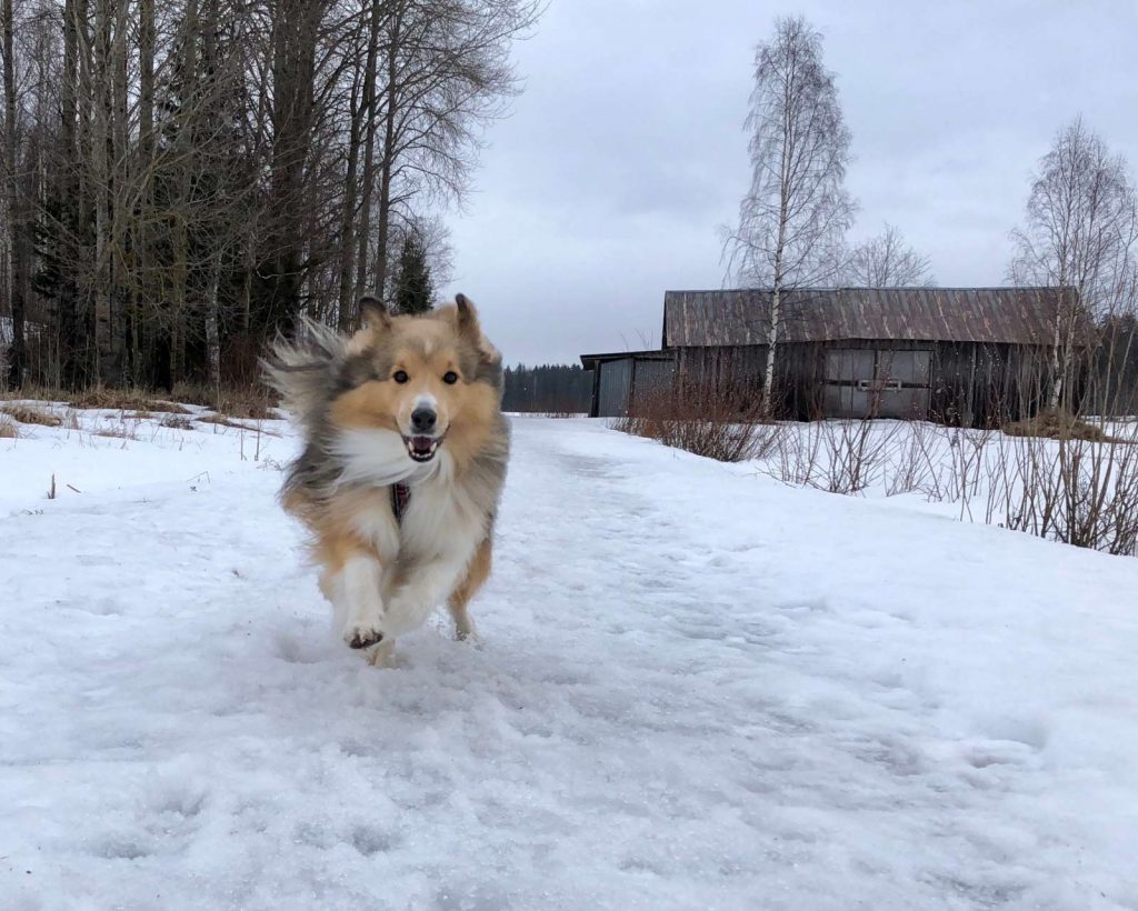Koira pakottaa ihmisen pois neljän seinän sisältä